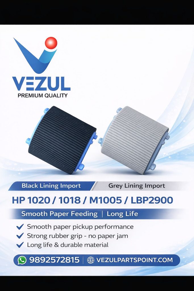HP 1020 / 1018 / M1005 / LBP2900 Pickup Roller is a high-quality replacement part designed to ensure smooth and accurate paper feeding in laser printers. Available in black lining and grey lining (import quality), it helps prevent paper jams and improves overall printing performance.